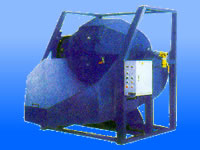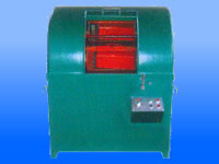 它的主要工作原理是在回轉(zhuǎn)圓盤上等距離偏置四個六角滾筒,回轉(zhuǎn)圓盤由電動機驅(qū)動,六角滾筒通過逆轉(zhuǎn)式離合器裝置傳動,六角滾筒既隨回轉(zhuǎn)圓盤公轉(zhuǎn),又隨逆回轉(zhuǎn)圓盤轉(zhuǎn)動方向自轉(zhuǎn)。由于公轉(zhuǎn)的作用,使六角滾筒產(chǎn)主很大的離心力,將六角滾筒內(nèi)的成型磨塊和工件甩向滾筒內(nèi)的向外一側(cè),并互相間產(chǎn)生壓力,在逆轉(zhuǎn)式高合器的作用,使六角滾筒產(chǎn)生與回轉(zhuǎn)圓盤運動方向相反的逆回轉(zhuǎn),速化為I=~1,由于自轉(zhuǎn)的作用,使?jié)L筒內(nèi)的工作與磨塊產(chǎn)生強烈的流動和摩擦,在這種離心力和高速流動的作用下,六角滾筒內(nèi)的工件被磨塊恰似用沙紙打光一樣,可在較短的時間內(nèi)將零件的毛刺、飛邊去掉,并可拋光。該機光整效率極高,適用于中小零件光整加工。