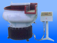 應用了國際上先進三元振動加工原理。當工件、成形磨塊、化學磨液和水按一定比例放人光整機的容器中。然后啟動振動電機。振動電機軸的上下兩端裝有偏心鐵塊,它們在水平面上的投影互成一個直角,當振動電機高速旋轉時,兩個偏心塊產生在水平面內沿圓周方向變化的激振力(離心力),使機體產生水平面內的圓周運動,同時由于激振力不通過機體的質心。因而產生激振矩(即傾倒力矩)使容器繞水平軸搖擺,由于容器底部呈圓環形狀、各點的振幅不一致,使容器中的成型磨塊和工件既豎直中心軸線公轉,又繞圓環中心翻滾,其合成運動為環形螺旋運動,同時容器有一螺旋升角,成型磨塊和工件沿螺旋面向上滑行,使工件和成型磨塊在運動時增加了摩擦力,提高了光整效率。容器為了減少工作中磨塊的和工作對其的磨損,降低噪音,在其內壁掛涂耐磨橡膠或聚氨脂。為了改善工作環境,又可另外配置消音罩,適用于小中大零件的光整加工。