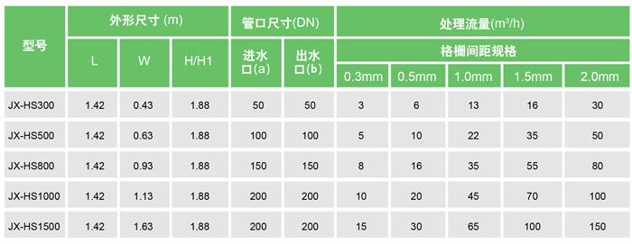 水力柵/水力篩/靜態篩的型號及參數表